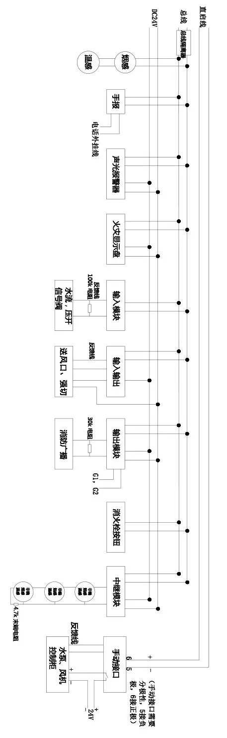 手動(dòng)接口為多線模塊,不用編碼,主機(jī)上的每個(gè)直控點(diǎn)都對(duì)應(yīng)一個(gè)手動(dòng)接口,直接從主機(jī)布線到現(xiàn)場(chǎng)中間不連接任何設(shè)備,5、6端子要分極性